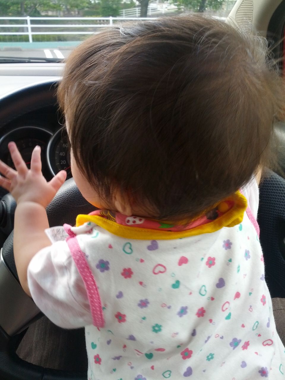 移動中はチャイルドシートから動けませんが、エンジンを切っている時に運転席でひざの上に抱くとご機嫌になります。