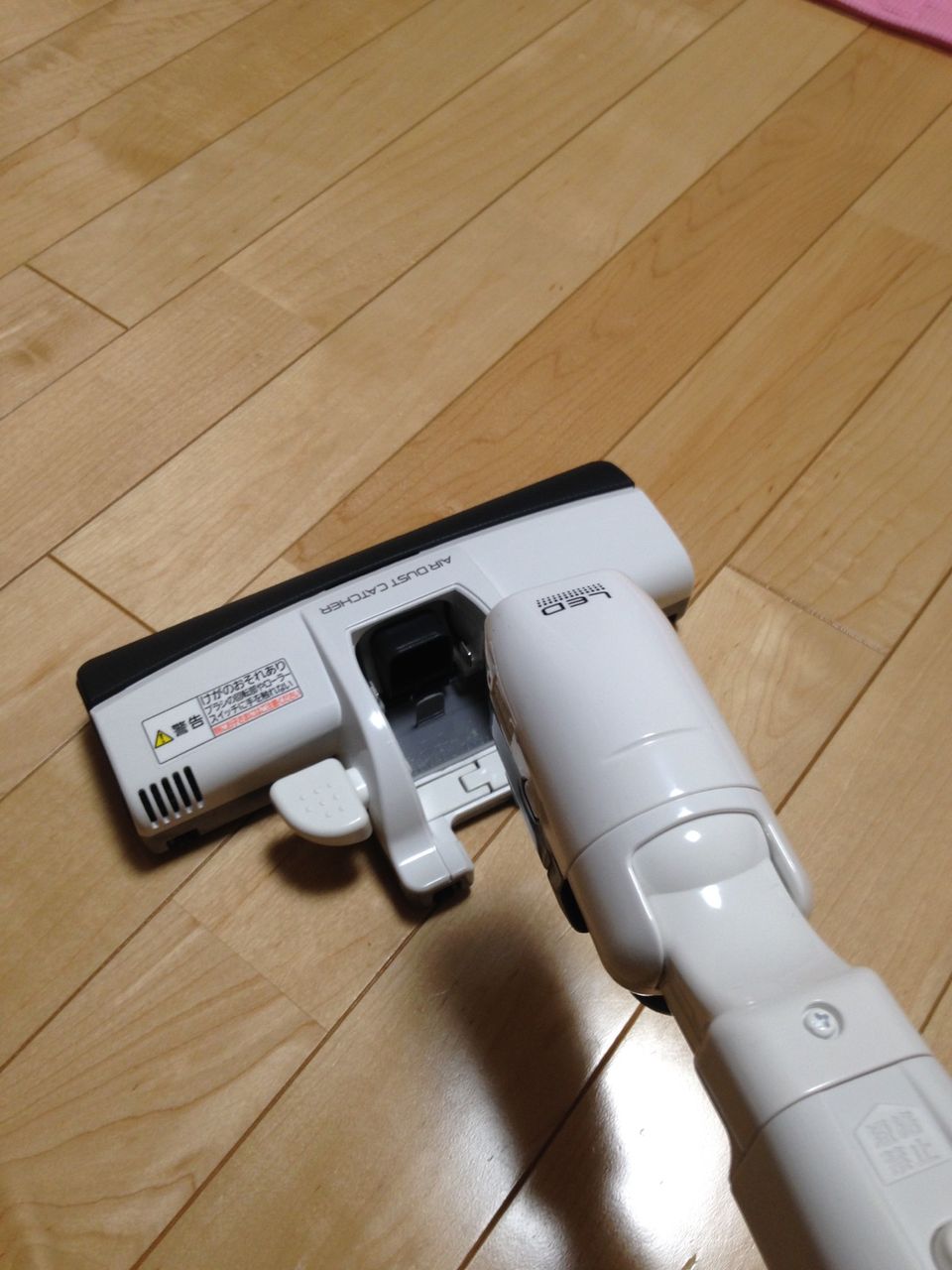 また、足でスイッチを踏むと先端がはずれ、隙間掃除にもってこいなカタチに。この状態でも、なんとLEDがついています^^